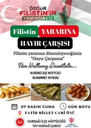 Nurdağı Müftülüğü ve Türkiye Diyanet Vakfı Nurdağı Şubesi Filistin yararına Hayır Çarşısı düzenledi.
