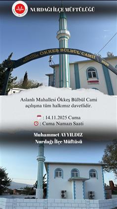 14.11.2025 tarihinde Cuma Namazında Aslanlı mahallesi ökkeş bülbül camii açılışı gerçekleştirilecek olup tüm halkımız davetlidir.
