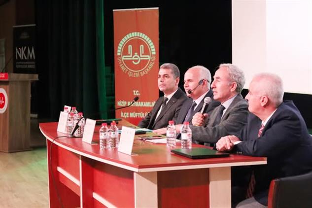 Mevlid-i Nebi Haftası münasebetiyle İl Müftümüz Dr. Hüseyin HAZIRLAR’ın moderatörlüğünde, GİBTÜ Rektörü Prof. Dr. Şehmus DEMİR, Gaziantep Üniversitesi Öğretim Üyesi Prof. Dr. Mustafa ÜNVERDİ, GİBTÜ İlahiyat Fakültesi Dekanı Prof. Dr. Mahsum AYTEPE hocalarımızın katılımlarıyla Nizip Kültür ve Kongre Merkezinde "Peygamberimiz ve Aile Ahlakı" konulu panel düzenlendi.