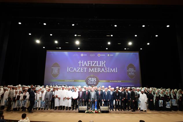 Gaziantep İl Müftülüğümüze bağlı Kur'an Kurslarımızda hafızlık eğitimlerini başarıyla tamamlayarak mezun olan 211'i erkek, 107'si kız olmak üzere toplam 318 Hafız Öğrencimiz, Şahinbey Kongre ve Sanat Merkezi’nde düzenlenen “Hafızlık İcazet Merasimi” ile belgelerini aldılar.