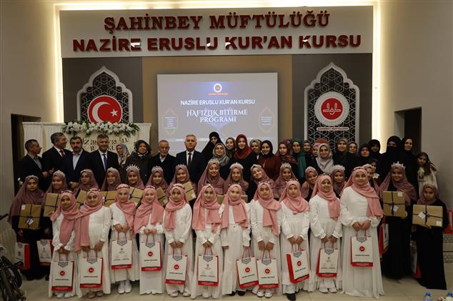 Şahinbey İlçe Müftülüğümüze bağlı, Nazire Eruslu Kur’an Kursumuzda hafızlığını tamamlayan 16 öğrencimiz ile hazırlık eğitimini başarıyla bitirerek hafızlık eğitimine başlayan 11 öğrencimiz için anlamlı bir program gerçekleştirildi.
