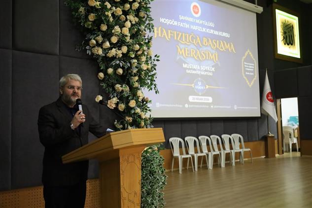 İl Müftüsü Mustafa Soykök, Şahinbey İlçe Müftülüğüne bağlı Hoşgör Fatih Kur’an Kursu tarafından düzenlenen hafızlığa başlama ve Esmaü’l Hüsna yarışma programına katıldı.